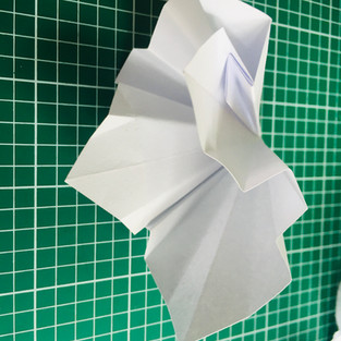 The third aspect of the task asked us to take one material and make a further ten from it. I chose paper simply because for me it was the least determined of the materials that were suggested (clay, grass etc) and in that way had the most potential for variety. I started out with one sheet of paper. My first inclination was to fold it and make origami structures. As the task asked us to make new materials I didn't continuing this. Although in one of my experiments I did try to make an origami crane from memory which failed but did produce a nice topological structure nonetheless.
